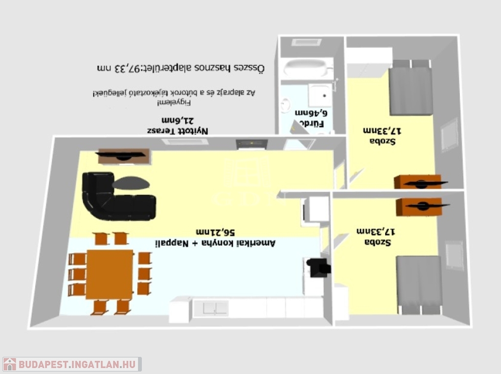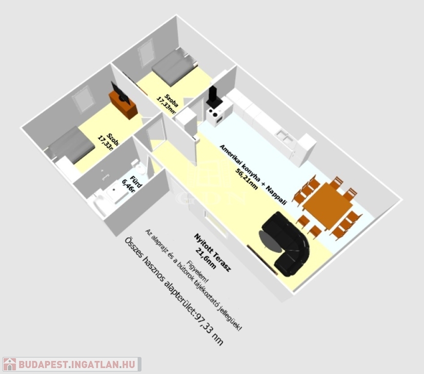 - amerikai stílusú konyha + nappali,
