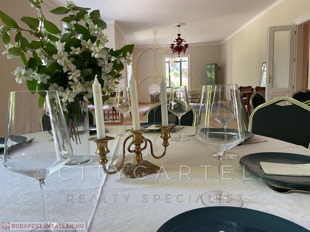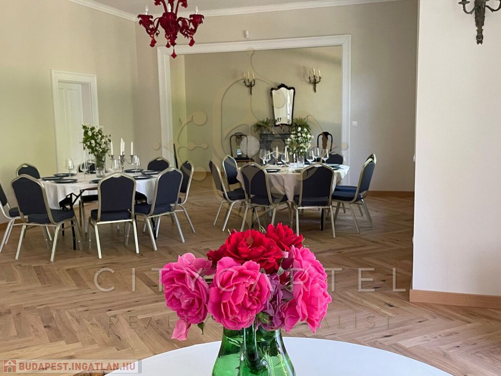 - Földszint: elegáns előtér és hall, 120 nm-es bálterem (amely alkalmas céges rendezvények, kisebb konferenciák, családi események és esküvői vacsorák megtartására 40-80 főig), egy hálószoba káddal, két fürdőszoba, konyha, kiszolgáló területek