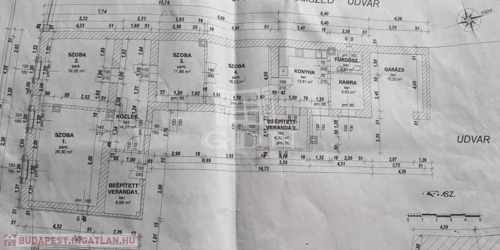 - a nagy része kő és vályog falazatú (50 cm!), az alaprajzon szereplő 26 nm-es szobából ytong falazatú fürdőszoba került kialakításra.