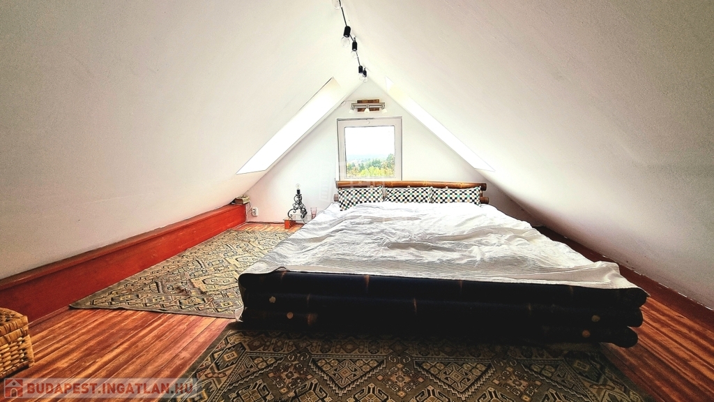 A legfelső szinten egy hangulatos kicsi hálószoba helyezkedik el.