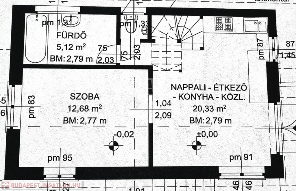 Az alsó szinten 1 szoba, tároló, a földszinten amerikai konyhás nappali, háló, fürdő, wc lett kialakítva.