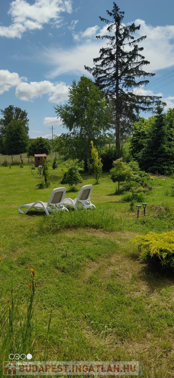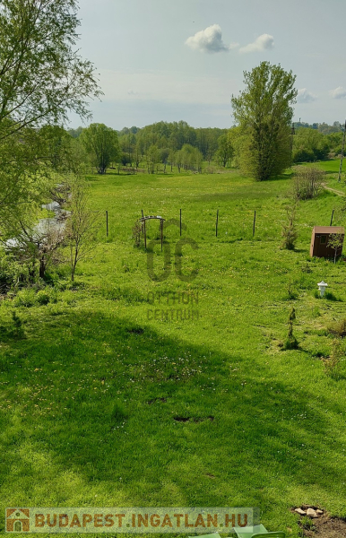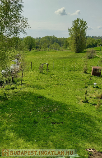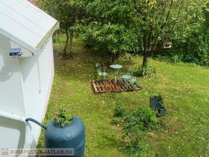 A házhoz tartozó patak parti kert gondozott, sík, jó arányú telken igényes kialakítású, japánkert stílusú. Méreténél fogva akár lótartásra is alkalmas.