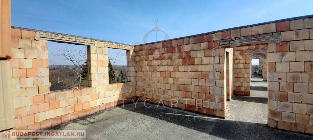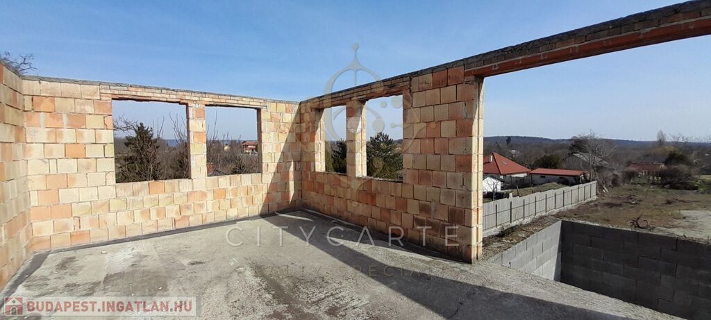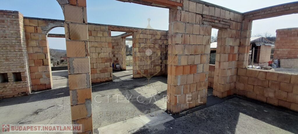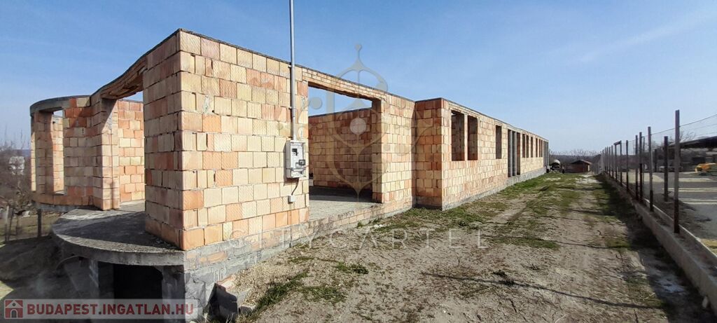 Eladó Pusztazámoron 1940nm-es telken lévő, bruttó 470 nm felépítmény + 250 nm garázs és tárolók, 30% készültségű panorámás ingatlan. Akár több lakás kialakítására is alkalmas. Az ikerház tervek most készülnek.