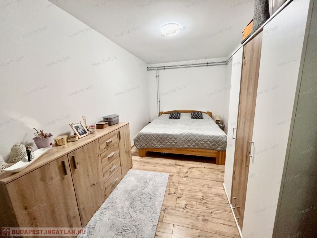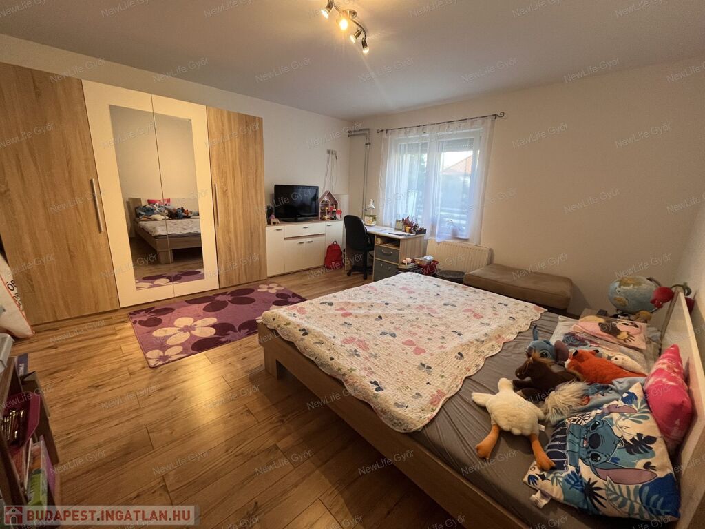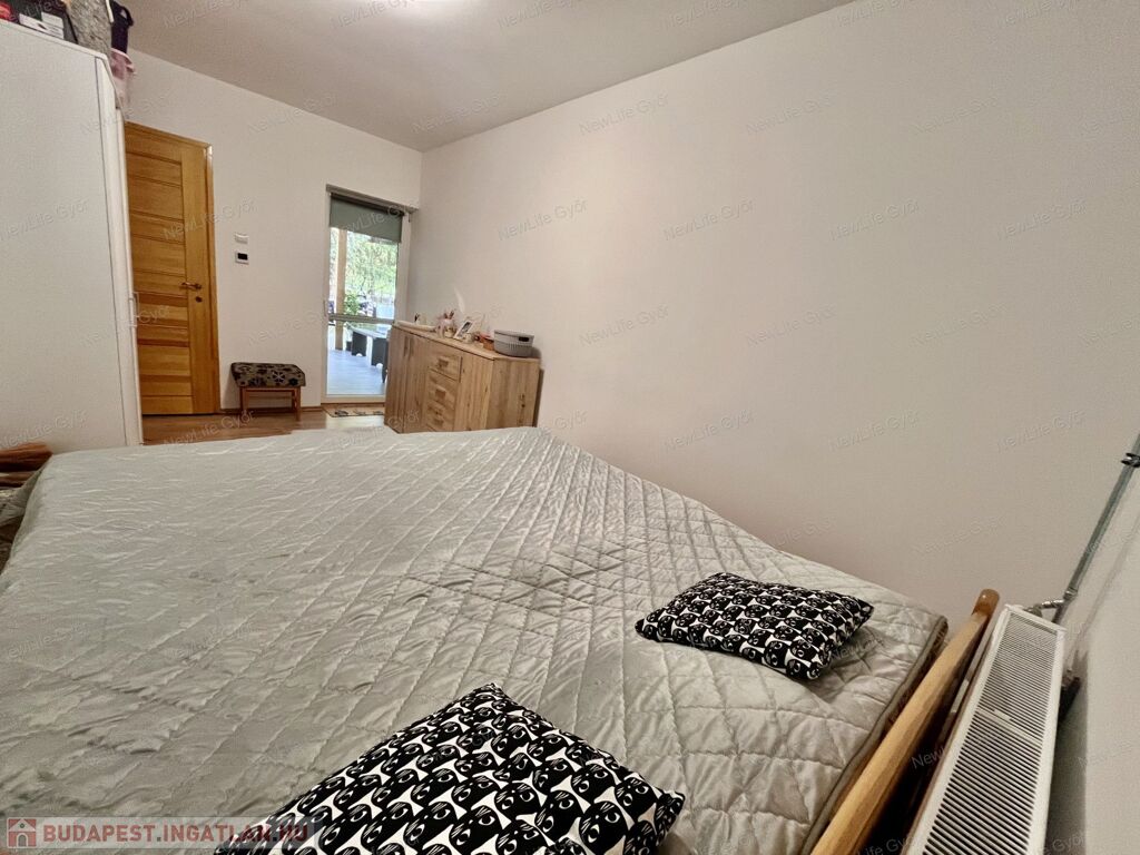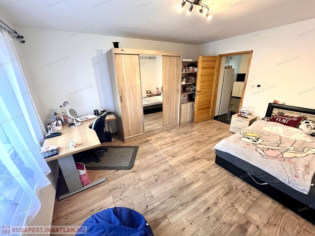 A három hálószobából 2 nagyon nagy, egyenként 22-22 nm-es, mindkettő az előkertre néz.