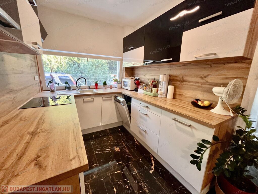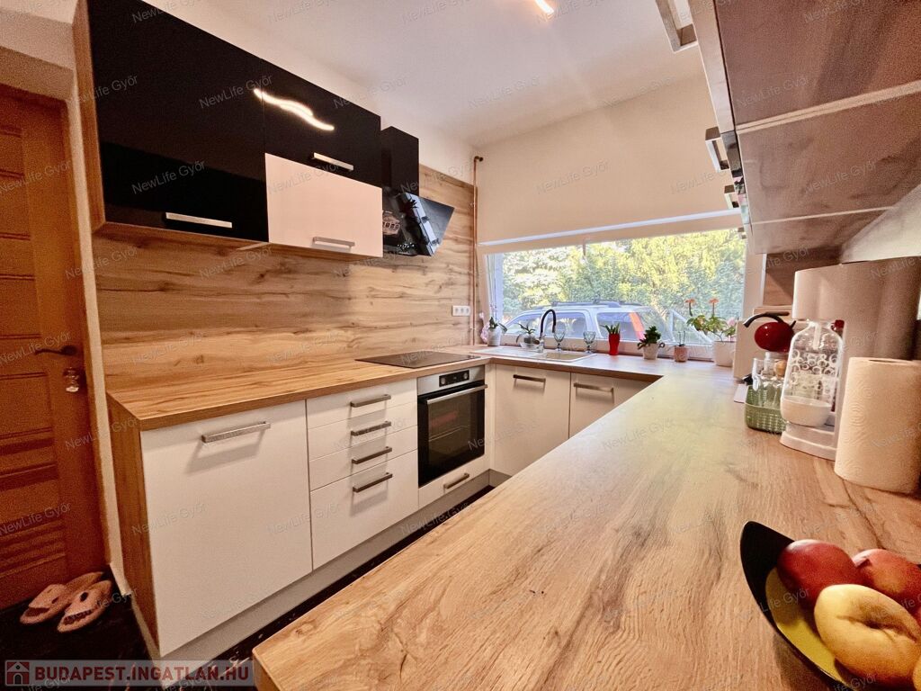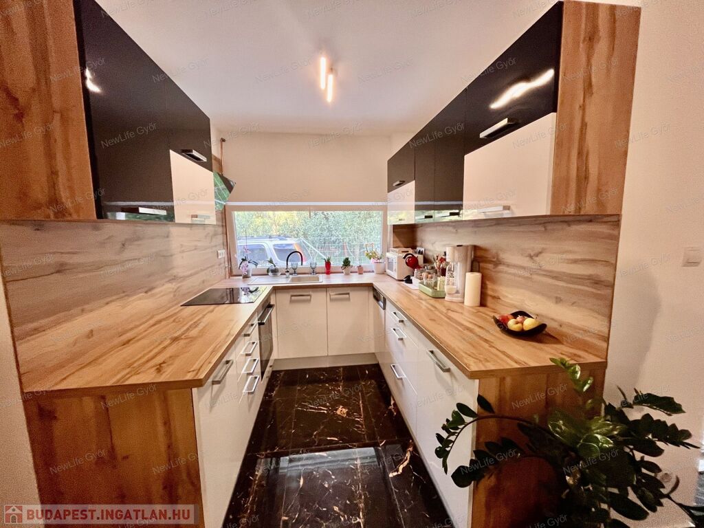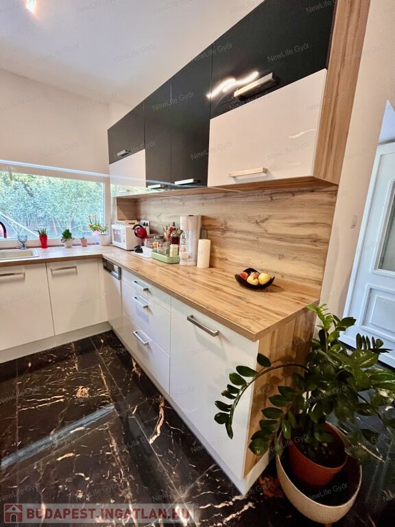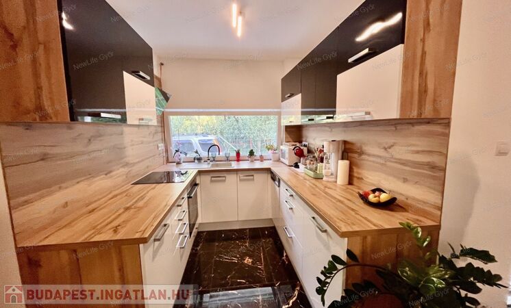 A ház éke a konyha,mely modern, igényesen kivitelezett. Beépített mosogatógép, sütő, főzőlap és szagelszívó lett a konyhabútorba beépítve. A háziasszonyok kedvence a konyhában található ablak, mely előtt nagy pult és a gránitmosogató is van.