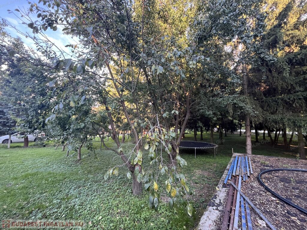 A kert parkosított, rengeteg örökzöld ékesíti. A kert teljesen körbekerített, dupla utcafrontú. A méretének köszönhetően pedig megosztható. Egy 900nm-es rész le is lett választva, mely akár befektetésnek vagy értékesítésre is kiváló. A 900nm-es telekre egy lakóingatlan építhető-akár ikerház is.