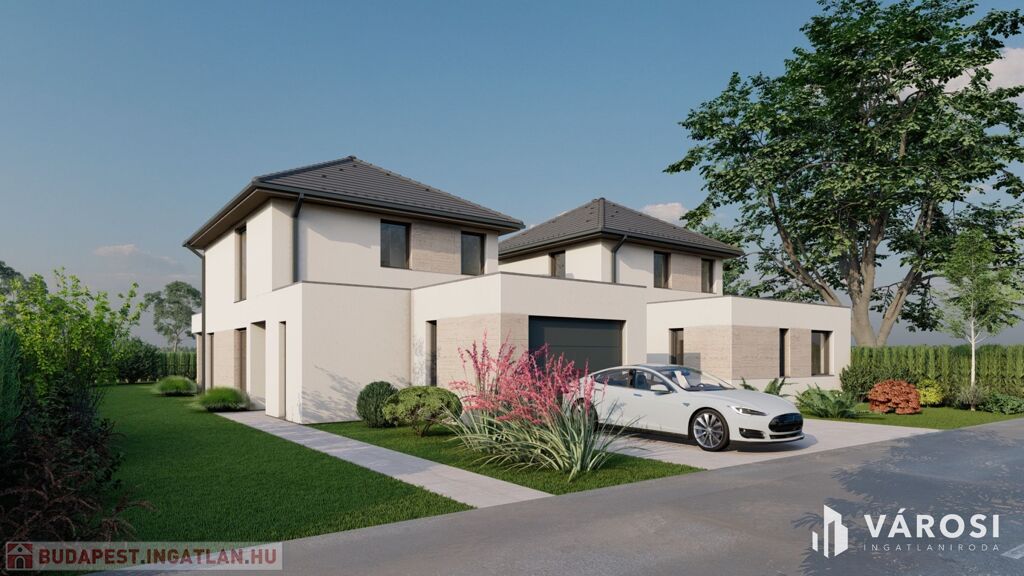 A 989m2-es telken ikerházas építkezés kezdődött meg, a belső kétszintes kialakítású házaknak nincs közös falazata, a két lakást fedett gépkocsibeálló köti össze, önálló bejárattal rendelkezik mindkettő az utcafrontról, így önálló házként funkcionálnak, a privát szféra garantált!