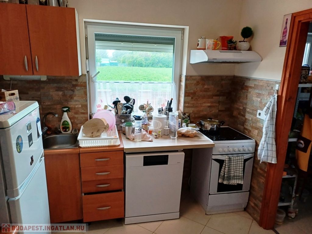 A nettó 104 m2-es családi ház 2018-ban épült, egy 700 m2-es összközműves telken, beton alapra, tégla falazattal, fa födémmel, cserépfedésű tetővel.