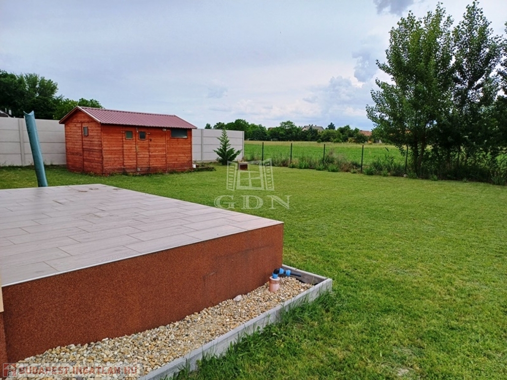 A kert rendezett, öntözése fúrt kútról biztosított, a kerti szerszámok tárolására 12 m2 kerti tároló épült.