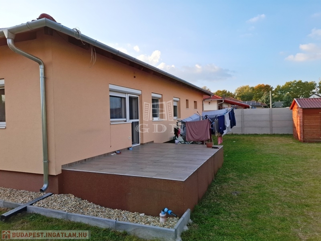A nettó 104 m2-es családi ház 2018-ban épült, egy 700 m2-es összközműves telken, beton alapra, tégla falazattal, fa födémmel, cserépfedésű tetővel.