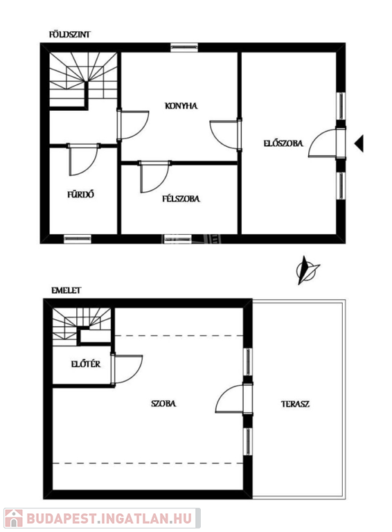 A házhoz tartozik egy 20 négyzetméteres terasz, ahonnan a kertre nyílik kilátás.