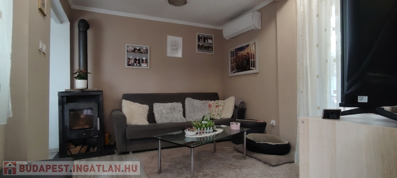 Fűtése fatüzelésű kandallóval történik, valamint egy 3,5 KW teljesítményű Gree klíma segít a hideg, és a meleg napokon.