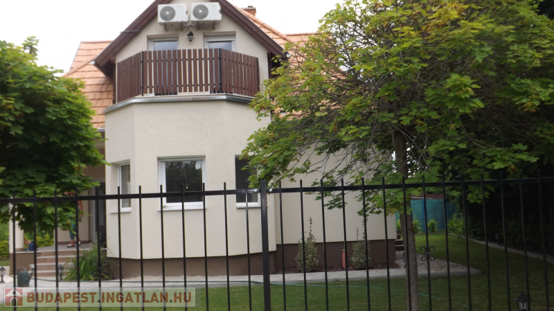 Ráckevén, 100m-re a Kis-Dunától, csendes zsákutcában, hangulatos,134 nm-es ,tégla építésű, két szintes , tulajdoni lap szerint üdülő besorolású nyaraló eladó.Az ingatlan Somlyószigeten, aszfaltos út mellett található.Az ingatlant 2002-ben kezdték el építeni téglából, cserépfedéssel.A földszint 78 nm, plusz 7 nm terasz, a felsőszint 56 nm (45 nm)A földszinten egy tágasabb előtérbe lépünk be, melynek jobb oldalán található a lépcsőház, balra pedig a lenti hálószoba nyílik. Az előtérből tovább haladva a hatalmas nappaliba jutunk, melynek két végében egy-egy félkör alakú kiszögellés található, melyből az egyik a konyha, a másik akár télikertnek is megfelel. A nappaliból nyílik még egy földszinti tusolós fürdőszoba is.Az emeleten egy előtérből nyílik 3 szoba, melyek közül kettő erkélyre nyílik. Fenn található megy egy fürdőszoba is, melybe fürdőkádat állítottak be.A telken vezetékes víz, csatorna, és villany található.A fűtést elektromos kazán szolgáltatja, valamint inverteres légkondicionáló berendezések segítenek a téli-nyári kellemes hőmérséklet biztosításában.Az ingatlan üdülőövezetben található, tehát nem CSOK-kompatibilis.Az ingatlan önálló telken helyezkedik el, teljesen körbekerített, a kert parkosítva van.ÁLLANDÓ LAKHATÁSRA IDEÁLIS VÁLASZTÁS.Az ingatlan megtekintése irodánkkal előre egyeztetett időpontban történik. Szívesen állunk rendelkezésre!