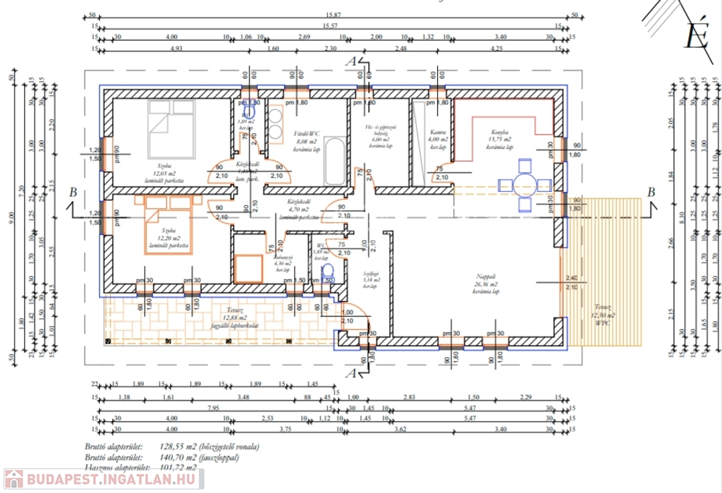 2,- nappali + 3 hálószobás kialakítás nettó 110 nm - 88.000.000.-Ft,