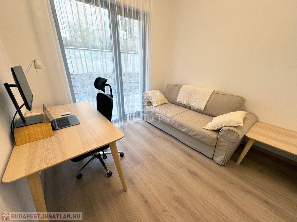 Az épület egy 736 m²-es gondozott, örökpanorámás telken helyezkedik el. A kert igényesen kialakított gyepszőnyeggel és örökzöld növényekkel rendelkezik, az öntözésről automata rendszer gondoskodik, így a zöldfelület egész évben rendezett marad. A 25 négyzetméteres teraszon kényelmesen tarthatók családi és baráti összejövetelek. A telken helyet kapott egy 14 m²-es kerti tároló is, amely tökéletesen alkalmas kerti eszközök vagy egyéb holmik elhelyezésére.