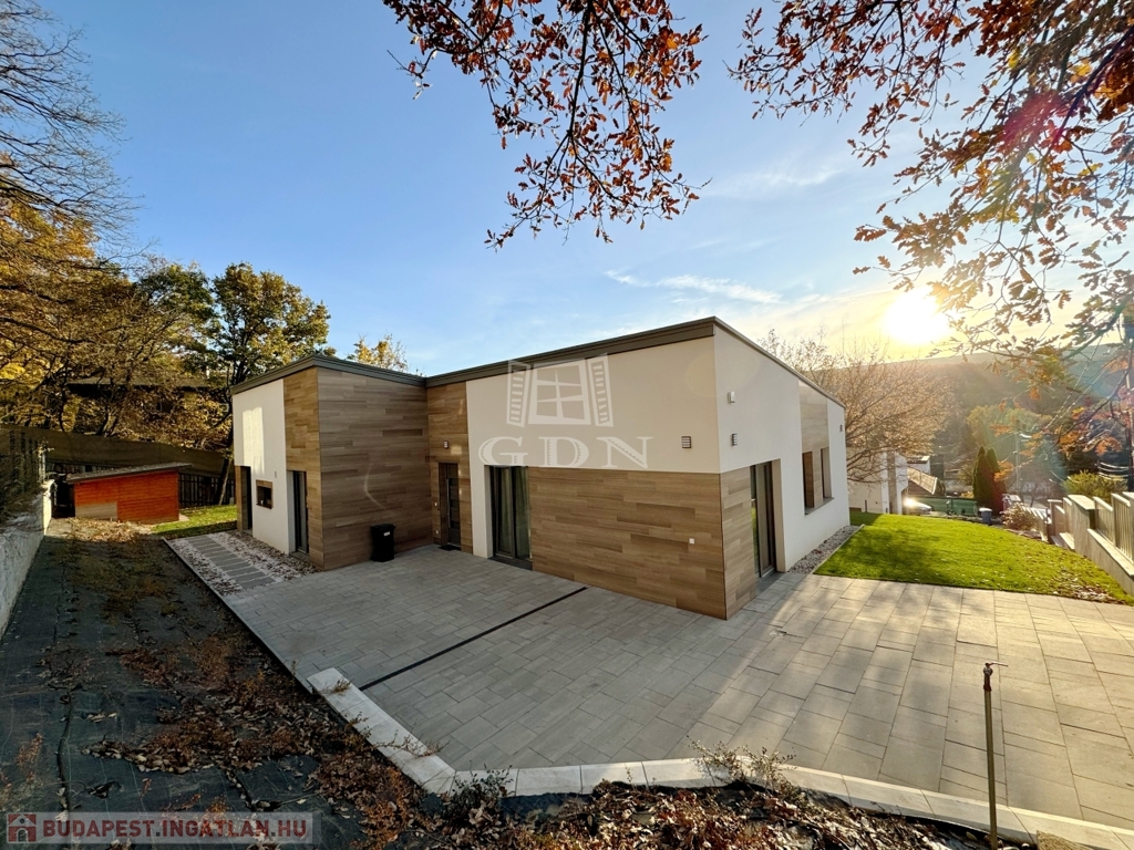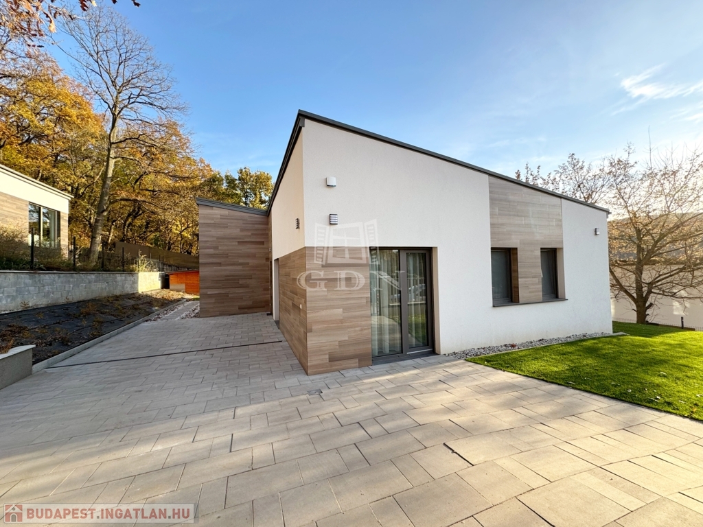 Remeteszőlős nyugodt, csendes részén eladó, a fotókon látható 1 szintes, 165 négyzetméter alapterületű, 2023-ban épült modern családi ház, közvetlenül az erdő szélén. A környéket a Remete-hegy, a Hosszúerdő-hegy és a Remete szurdok öleli körül, itt rengeteg barlang és más karsztos formáció fedezhető fel, ami remek lehetőséget biztosít a természetkedvelők számára. Mindössze 20 méterre elérhetők a természetvédelmi területek, amelyek friss levegőt és kiváló kikapcsolódási lehetőséget nyújtanak. A környék biztonságos, ideális azok számára, akik közel szeretnének élni a természethez, de fontos számukra a városi élet elérhetősége is. A közeli Amerikai Nemzetközi Iskola, a 63-as busz megállója, valamint a Linum udvar és a Hűvösvölgyi Stop Shop kényelmes bevásárlási lehetőségeket kínálnak, Budapest központja pedig mindössze 20 perces autóútra található.