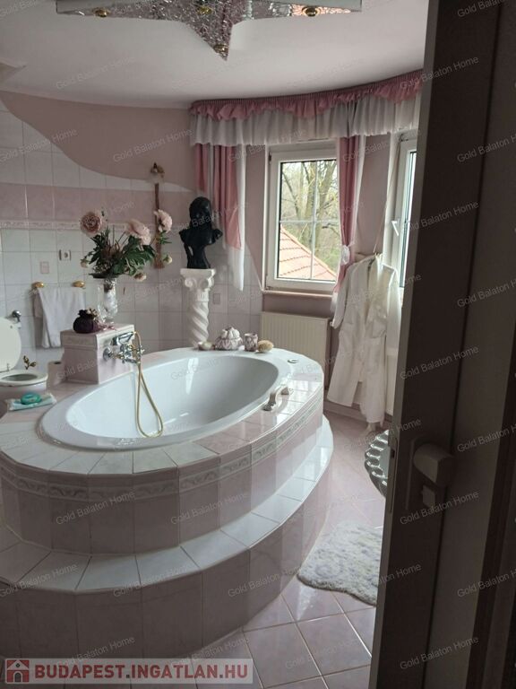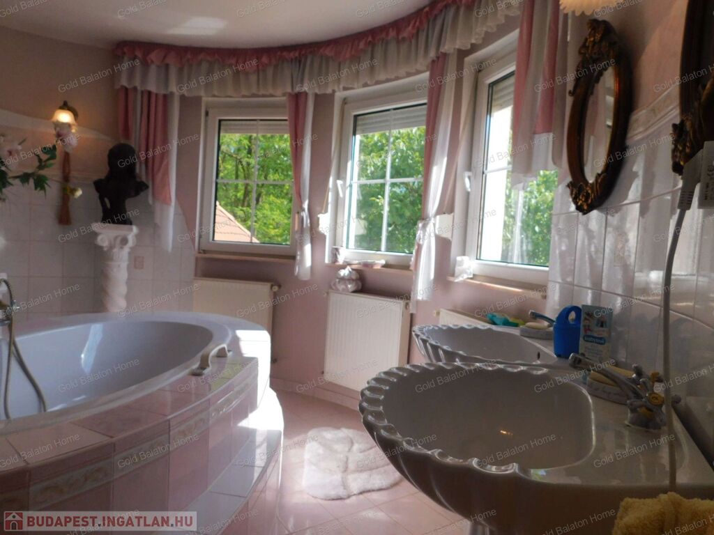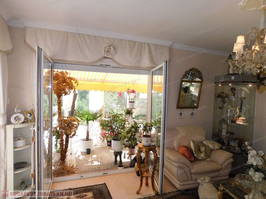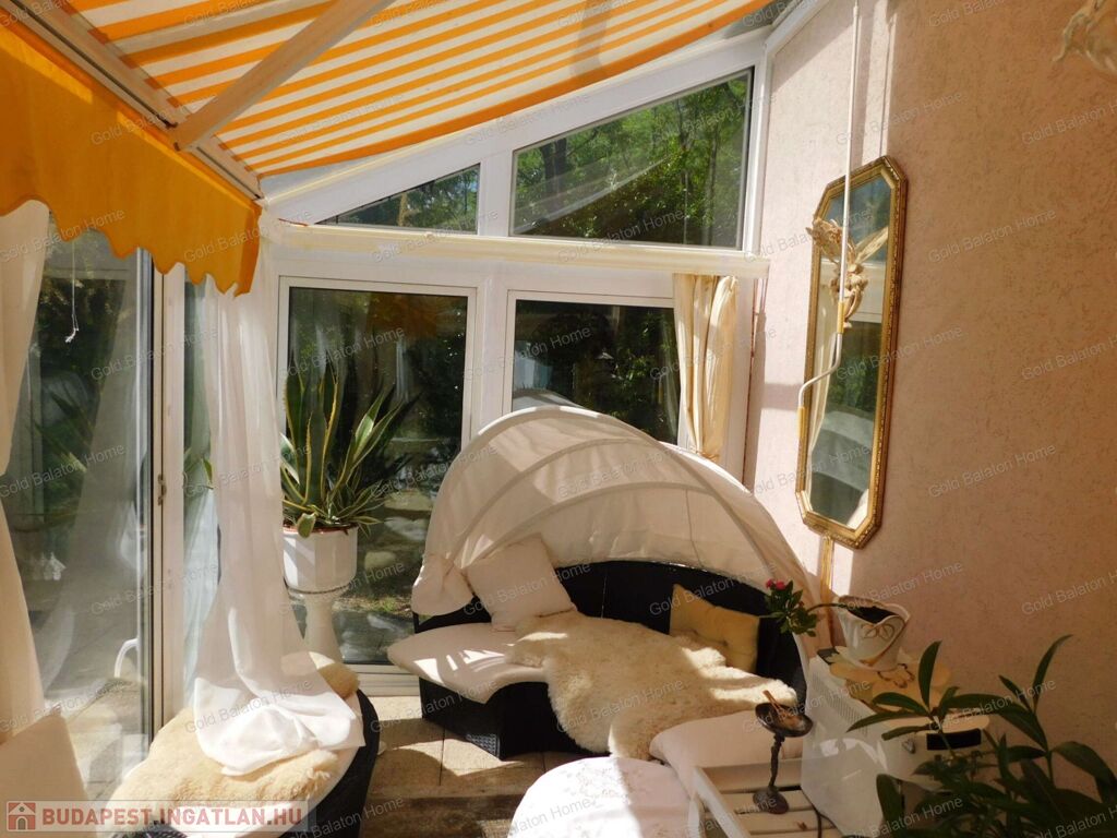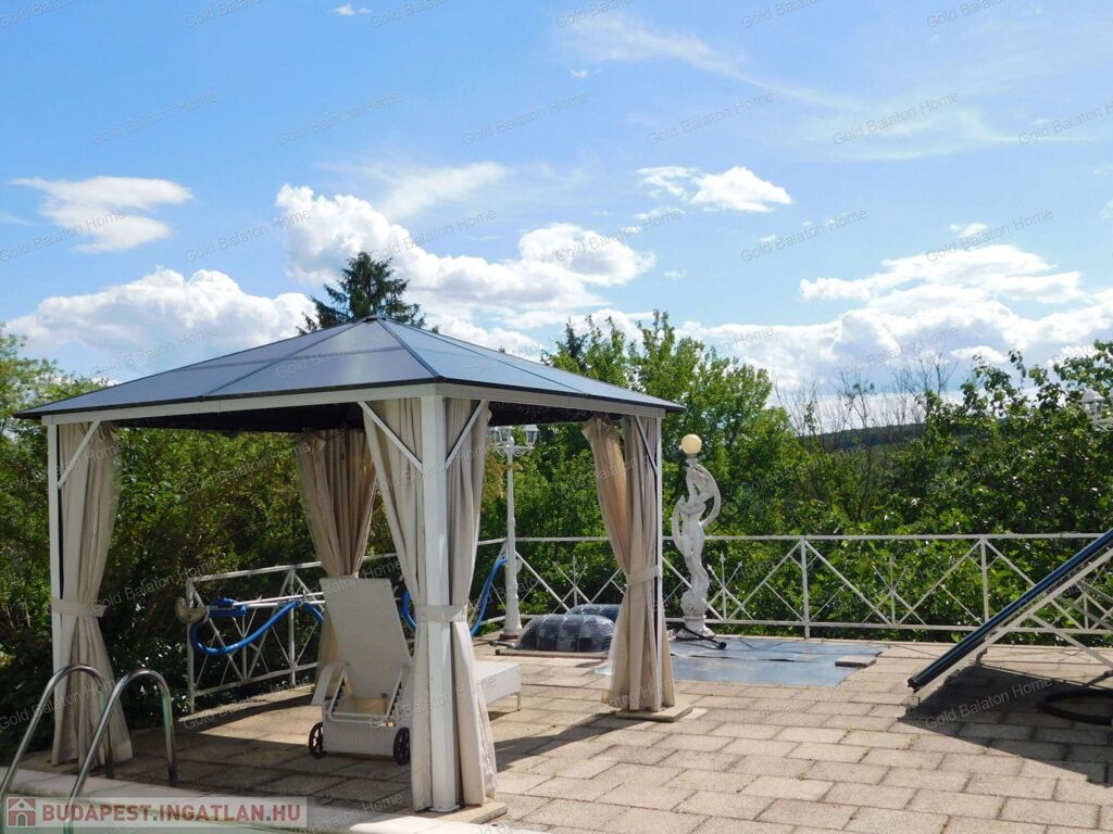 Két hálószobás, nagy nappalis, úszómedencés, napozó és grillező teraszos ház, dupla garázzsal, kondi teremmel és tájra néző panorámával a Hévízi tótól mindössze 5000 méterre, a Balatontól 9000 méterre eladó.