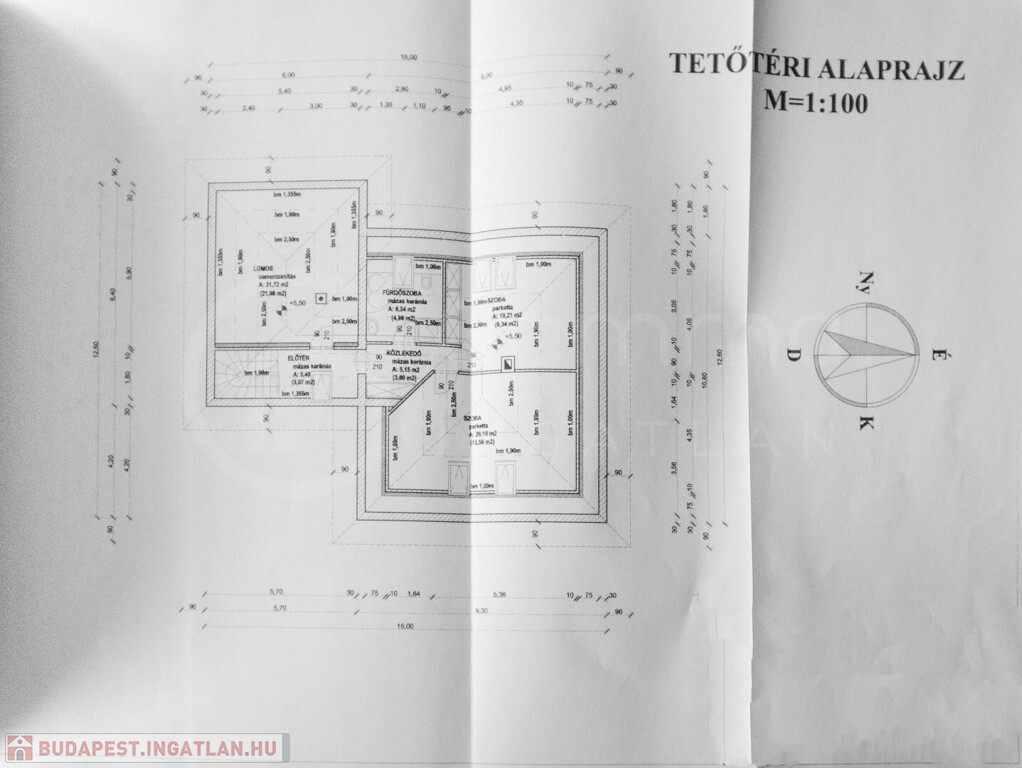 • Tetőtér (bruttó 67 m², nettó 34,75 m²): További 2 szoba, fürdőszoba és közlekedő került kialakításra.