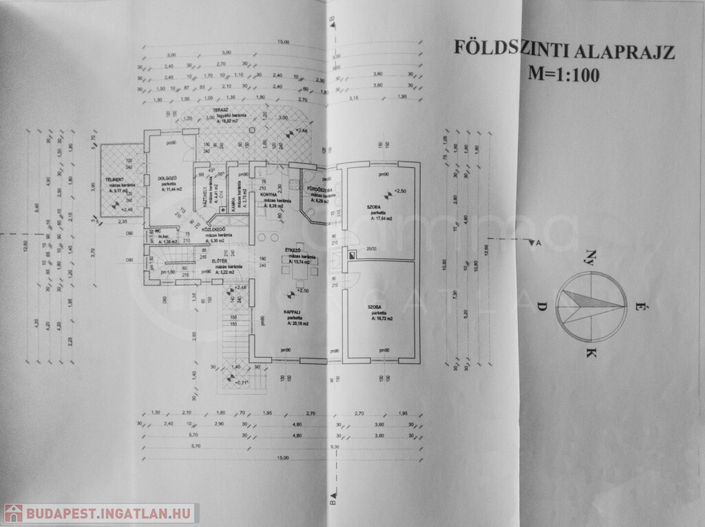 • Földszint (115 m² + 18,8 m² terasz + 9,17 m² télikert): Tágas nappali, 2 nagyméretű szoba, étkező, konyha, fürdő, dolgozószoba, valamint egy hangulatos télikert és terasz.