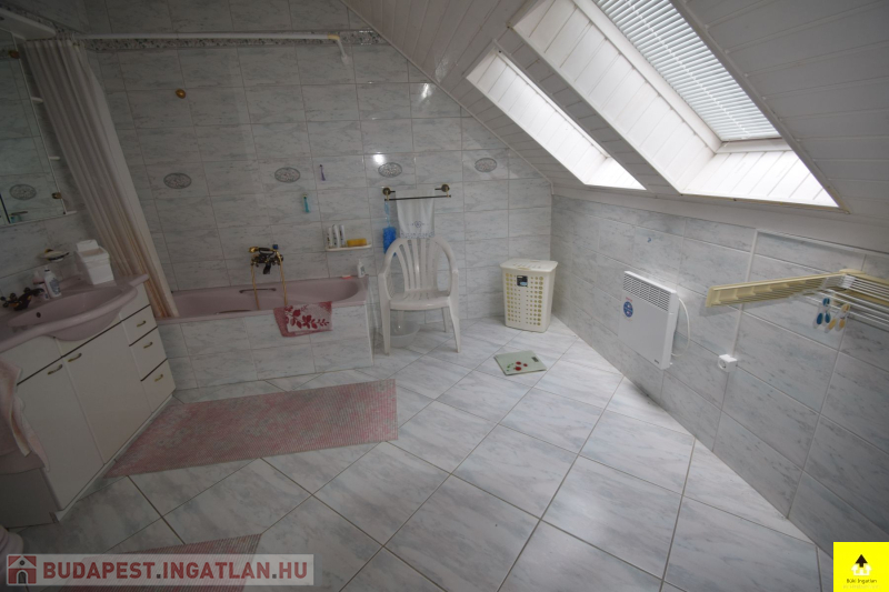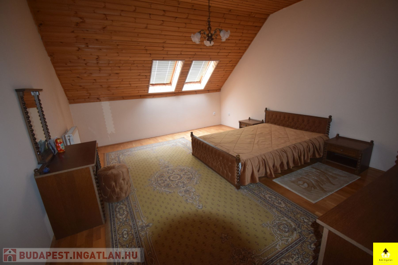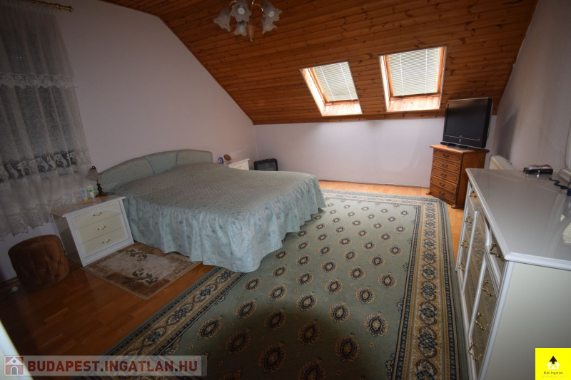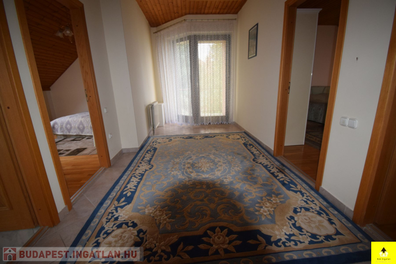 A felső szinten 3 nagy méretű hálószoba, egy tágas közlekedő és egy fürdőszoba kapott helyet.