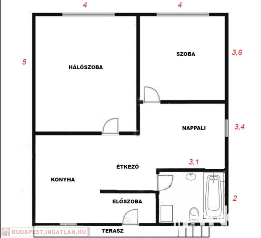 Helyiségei: Előszoba, konyha, étkező, nappali, fürdőszoba, 2 külön nyíló szoba.
