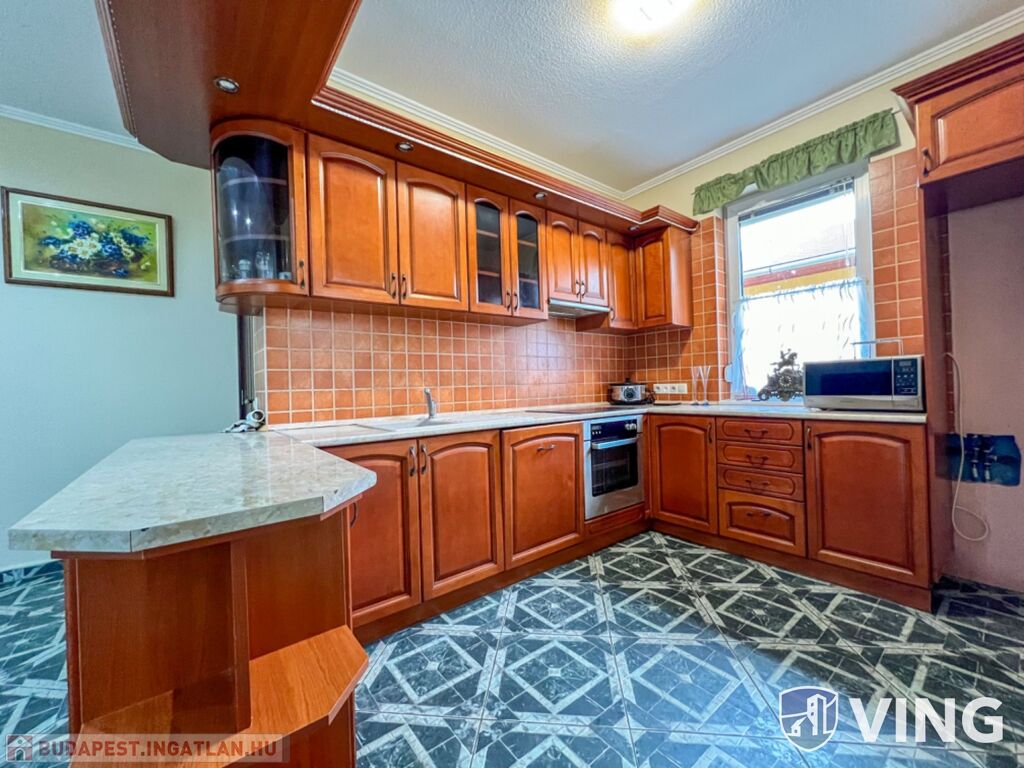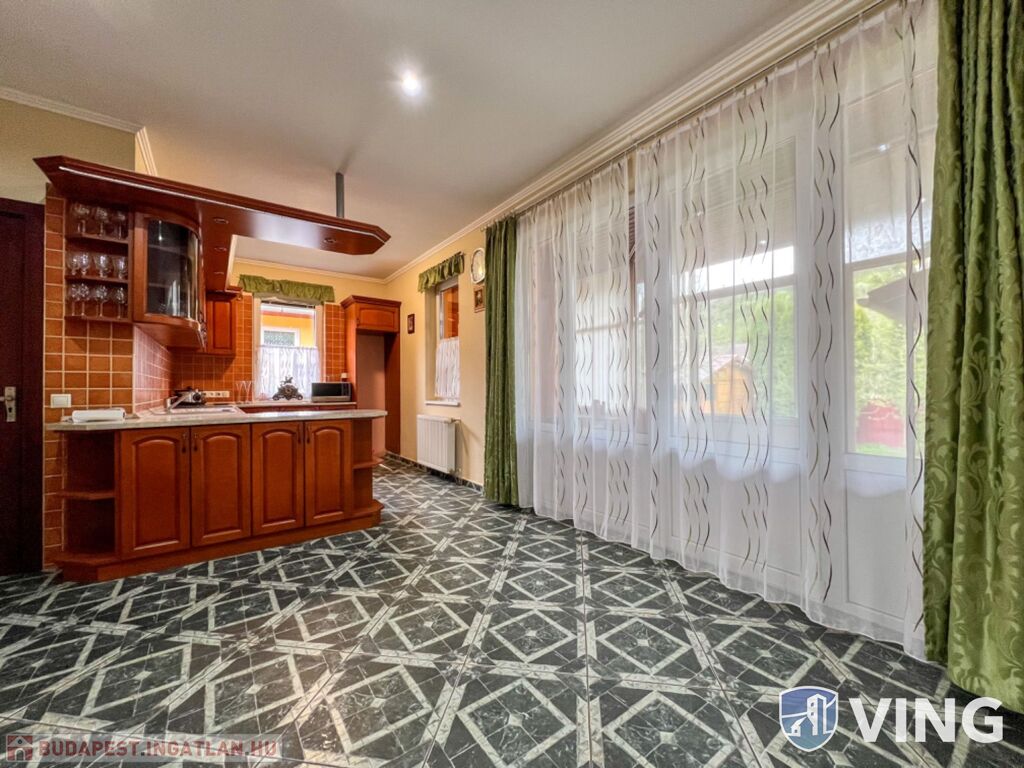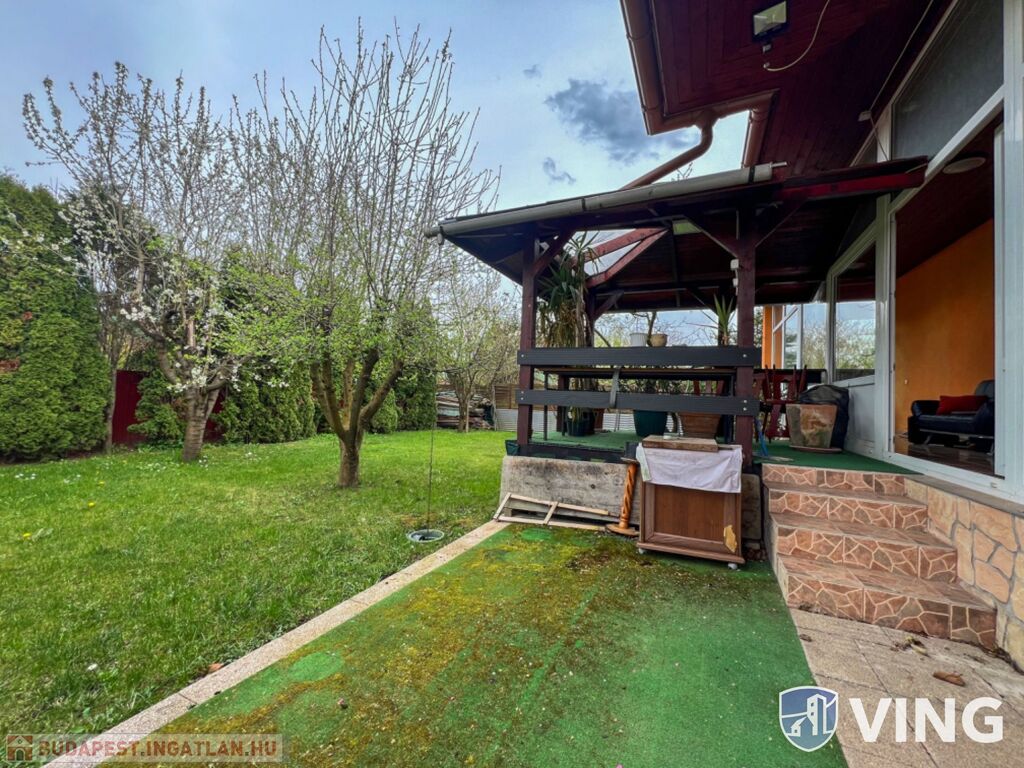 Az ingatlanhoz tartozó telek cca. 300 nm nagyságú, körbekerített, udvari gépkocsi beálló, nyitott terasz, kerti tároló, kemence, fúrt kút, tuják, gyümölcsfák találhatók.