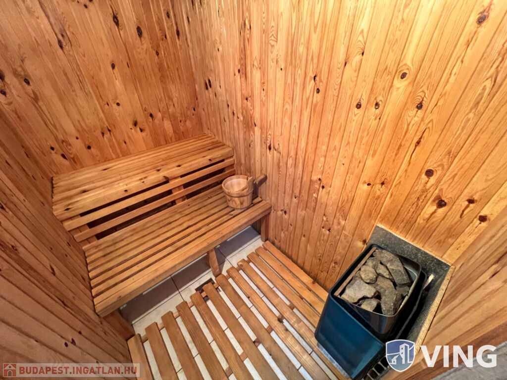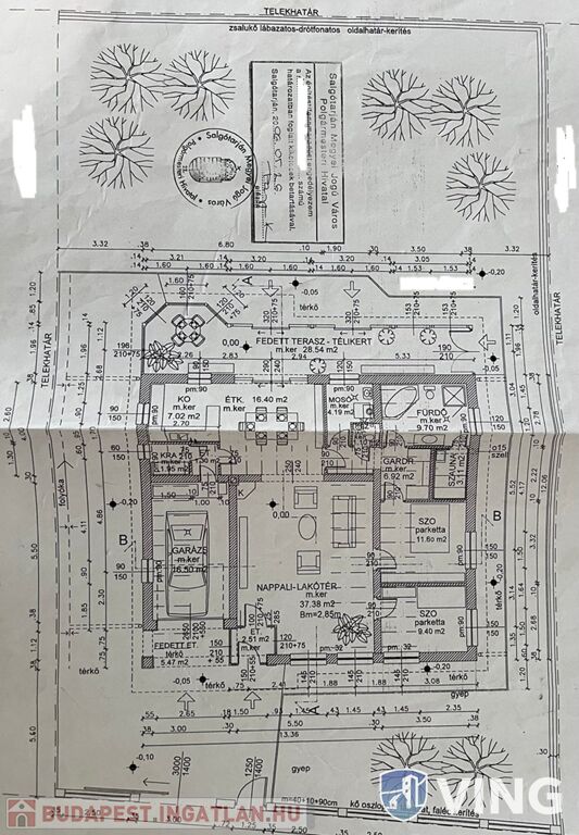 Helyiségei: 2 hálószoba, nappali, konyha+étkező, kamra, közlekedő, gardrób, mosóhelyiség, fürdőszoba, szauna, külön nyíló W.C., szélfogó, garázs, beépített terasz, nyitott terasz.
