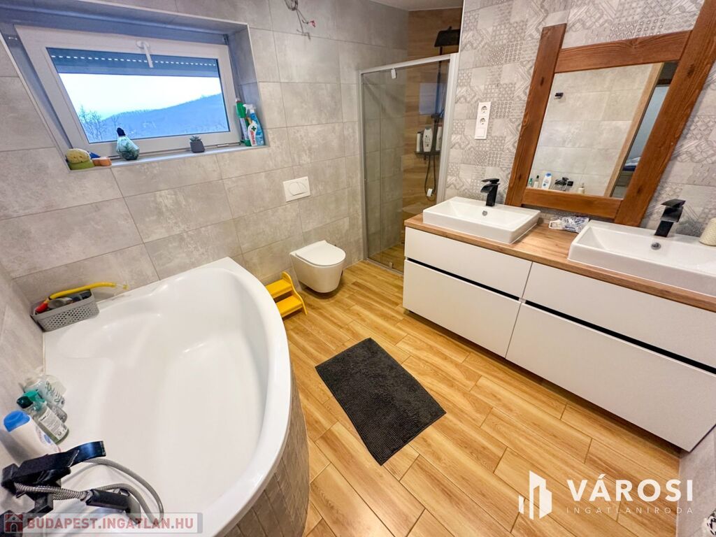 - Kültér: 1600 nm-es sík, panorámás telek, terasz, udvari gépjárműbeálló, 35 nm-es garázsalap.