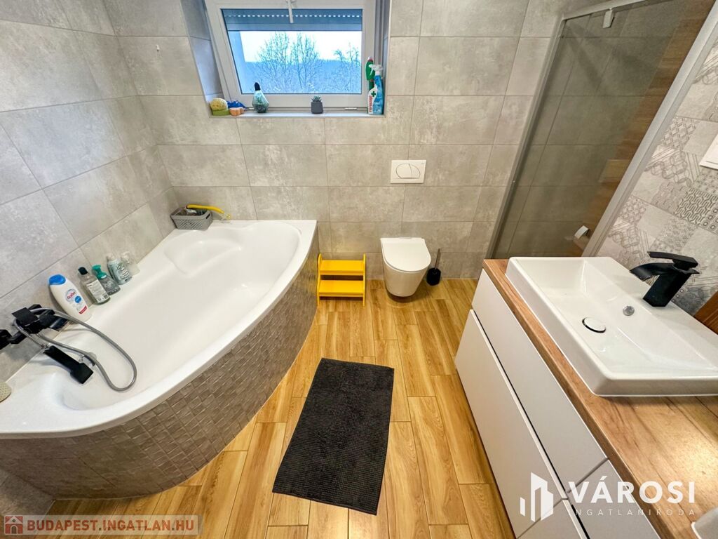 - Fürdőszoba: modern kialakítású, teljesen felszerelt, sarokkáddal és zuhanyzóval (Ravak).