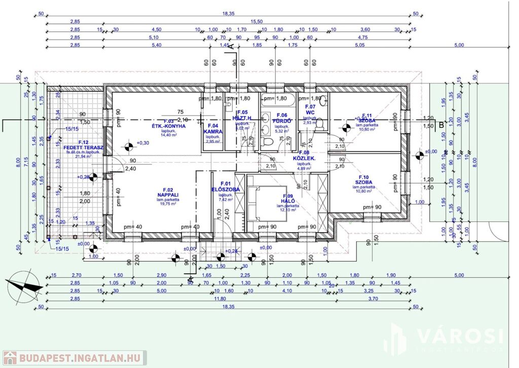 - Tetőszerkezet, födém: (záró) koszorúba kötött szeglemezes tetőszerkezet gomba, rovar és tűzkár ellen kezelve. Függesztett álmennyezettel, alsó burkolata glettelt 1 rtg gipszkarton burkolattal. Eresz lazúros gyalult lambériával burkolva.