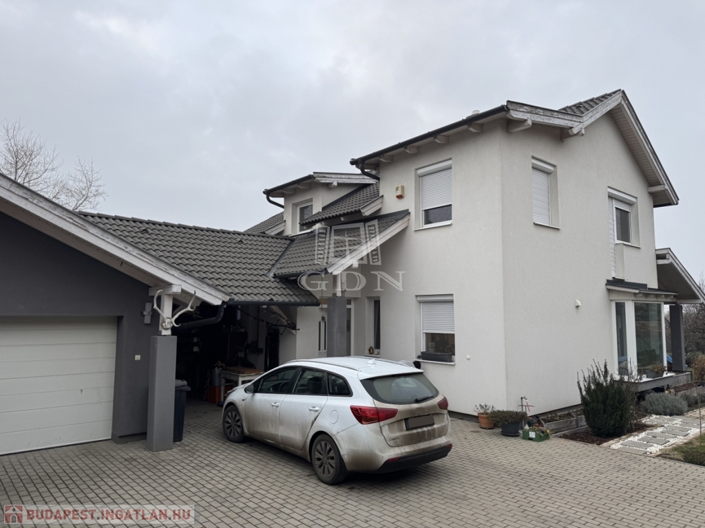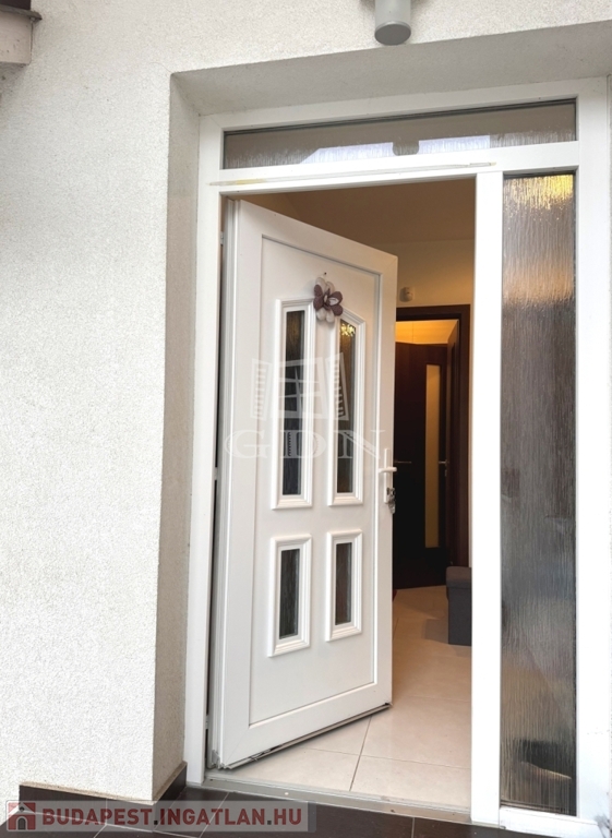A telek 584m2, egy része térkövezett, hátsó része füvesített. A házhoz kapcsolódik egy fedett beálló és egy garázs is.