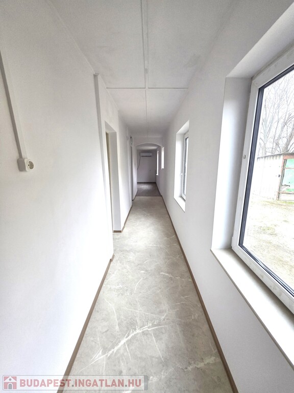 A ház elrendezése ideális, folyosóról nyíló szobák, konyha étkető, külön fürdőszoba és mellékhelyiség.