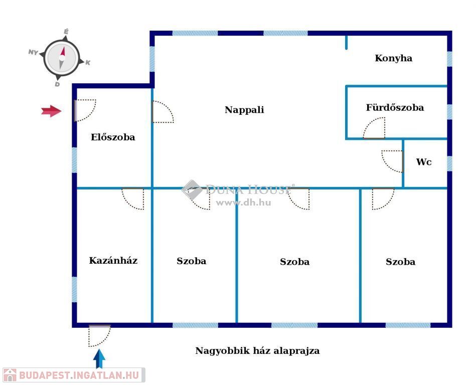 A telken egymás mögött két épület foglal helyet. Az utcához közelebb egy 102m2-es ház található, mely jelenlegi elrendezésében nappali + 3 különnyíló hálószobás, a szobákon kívül még egy fürdőszoba, külön wc, ablakos konyha, előszoba, illetve kazánház helyiségek kaptak benne helyet. Az épület tetőtere beépíthető.