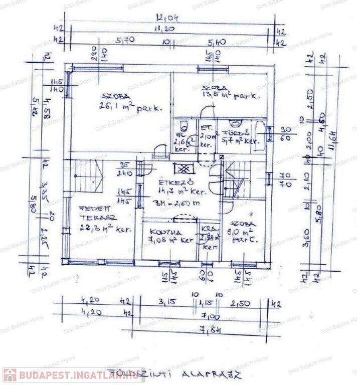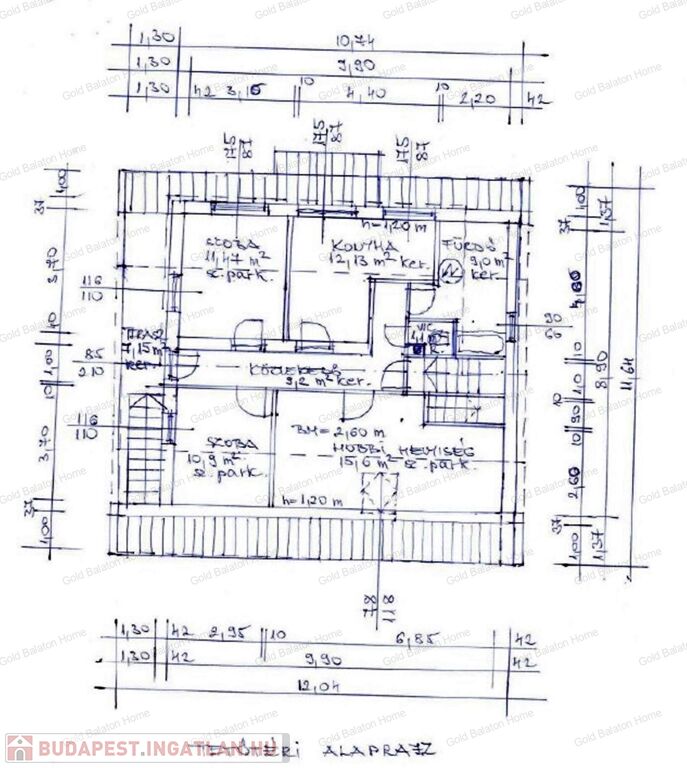 - tetőtér (70 nm + erkély 7,15 nm): közlekedő, hobbi helyiség, 2 szoba, konyha-étkező, fürdőszoba káddal, külön WC, erkély, lépcsőtér