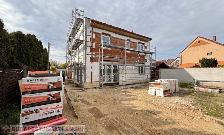 A tervezés során fontos szempont volt a minőség, a költséghatékony fenntartás és az ingatlan értékállósága. Az épület fűtését, illetve meleg víz ellátását a kor igényeinek leginkább megfelelő,egyedi kondenzációs-gázkazán biztosítja, egyedi méréssel és szabályozással, a hőleadás padlófűtéssel történik. Igazi családbarát kialakítás : A földszinten amerikai konyhás nappali, egy hálószoba, fürdő, külön wc és egy háztartási helyiség. Az emeleten három hálószoba, egy nagy fürdőszoba dupla mosdóval, káddal és zuhanyzóval is valamint egy külön wc is van. Nyugis terasz a kertben, valamint akár 2 autónak térkövezett beálló...
