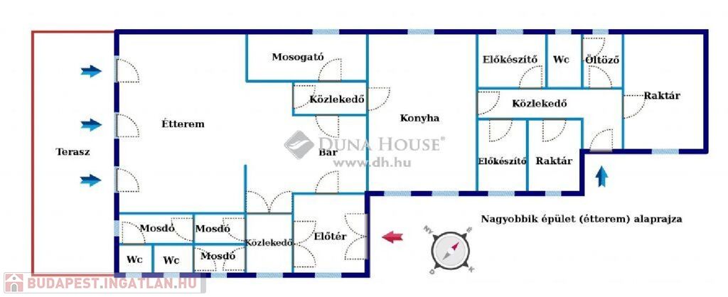 A nagyobbik felépítmény kb. 140m2-es, a házban korábban étterem üzemelt. Belső terei jelenleg ennek megfelelően vannak kialakítva, így akár újra megnyitható étteremként, de családi házzá, vagy akár két különnyíló lakássá is átalakítható. Az ingatlan belső állapotát tekintve felújításra szorul, azonban állékony, statikailag is remek állapotnak örvend. Külső homlokzata rendezett, teteje szép állapotú, modern, gázbeton cseréptető.