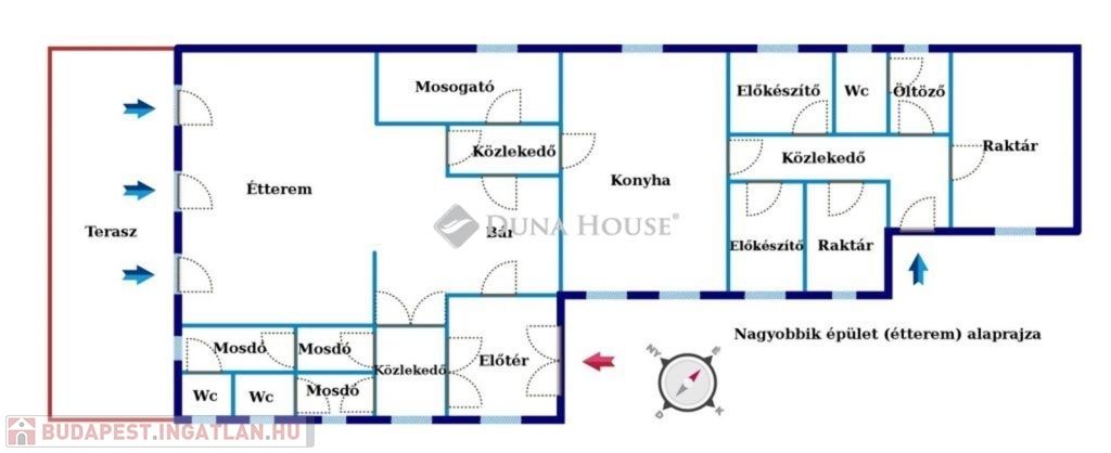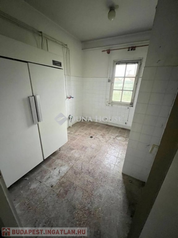 A nagyobbik felépítmény kb. 140m2-es, a házban korábban étterem üzemelt. Belső terei jelenleg ennek megfelelően vannak kialakítva, családi házzá, vagy két különnyíló lakássá is átalakítható. Az ingatlan belső állapotát tekintve felújításra szorul, statikailag megfelelő állapotban van. Külső homlokzata rendezett, teteje szép állapotú, modern, gázbeton cseréptető.