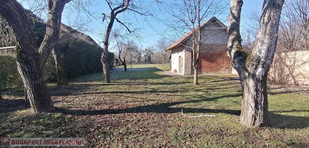 Az udvaron szép gyümölcsfák, hátrébb nagy melléképület található.