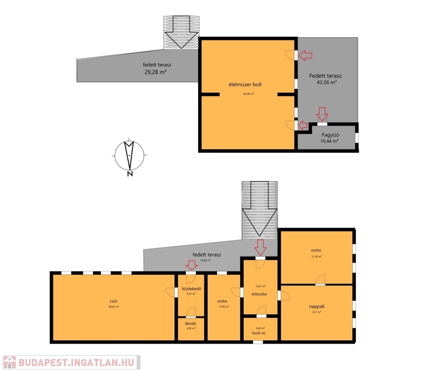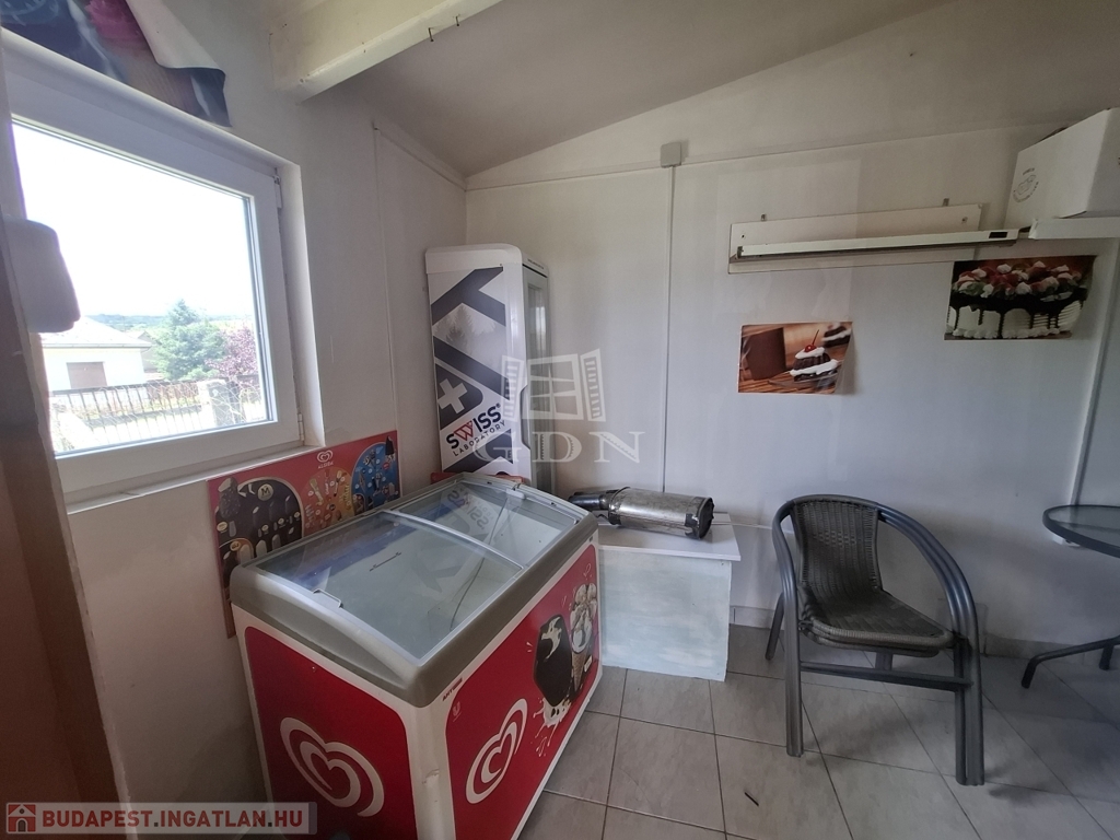 Az alsó szinten bolt (mely jelenlegi is üzemel), fagyizó és egy fedett terasz van. Az ingatlan így vállalkozásra is tökéltetesen megfelelő.