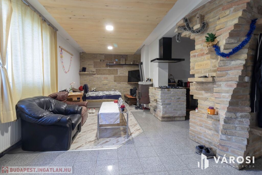 A ház óriási fedett terasszal és pincével, valamint különálló garázzsal is rendelkezik és gyakorlatilag a teljes ingatlan egybenyitott, de szeparálható is, több önálló lakás is kialakítható.