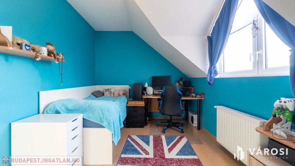 Az emeleten három hálószoba, egy káddal felszerelt fürdőszoba, külön WC, gardrób és közlekedő kapott helyet, így a ház akár nagyobb család számára is kényelmesen élhető.