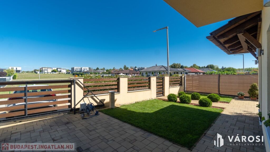 A kertkapcsolatos ingatlanhoz egy gyönyörű, ízlésesen parkosított kertrész, valamint 20 m² fedett térkövezett terasz is tartozik ahol akár grillezhet is a család és a barátok társaságában.