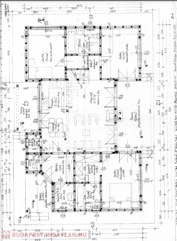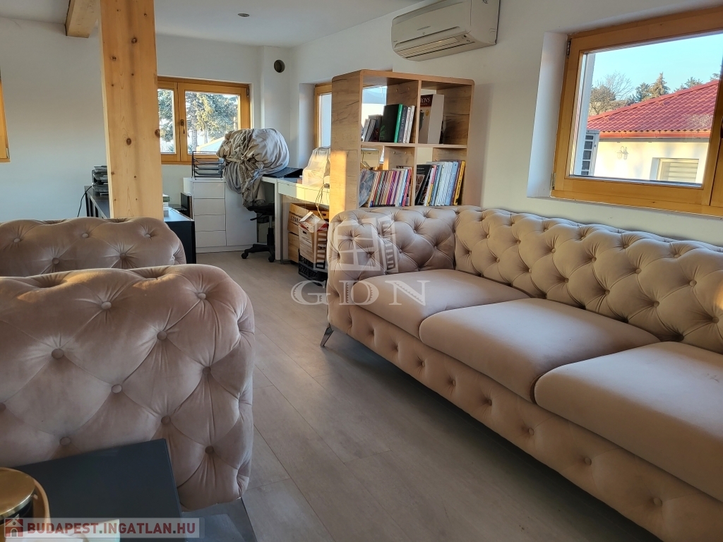 Az épület 12 helyiségből áll, mely tartalmaz egy nappali+amerikai konyha+étkező helyiséget és a felette kialakított galériát, 3 db 12-13 m2-es hálószobát, 2 fürdőszobát valamint előszobát, gardróbszobát, háztartási helyiséget, toalettet és egy kamrát. A házhoz 2 terasz helyiség is tartozik melyek 8,24 m2 valamint 16,98 m2 területűek