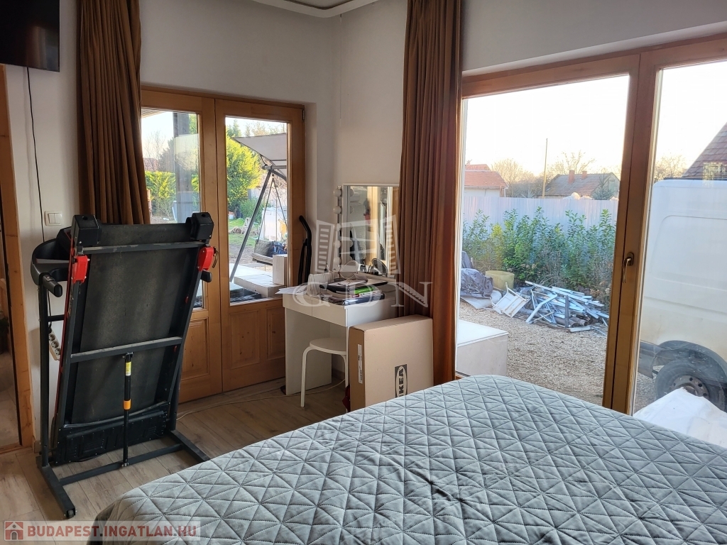 Siófok-Sóstó csendes, nyugodt környéken, közel a vízparthoz kínálom eladásra ezt az 1001 m2-es telken elhelyezkedőn új építésű, modern, bruttó 126 m2-es családi házat. Az ingatlan 2022-ben, azaz tavaly tavasszal készült el. A meleg víz ellátásért villanybojler felel, a fűtést kandalló, elektromos padlófűtés, és hűtő-fűtő klíma végzi, ami nyáron a hűtésért is felel. Az épület energetikai besorolása CC.