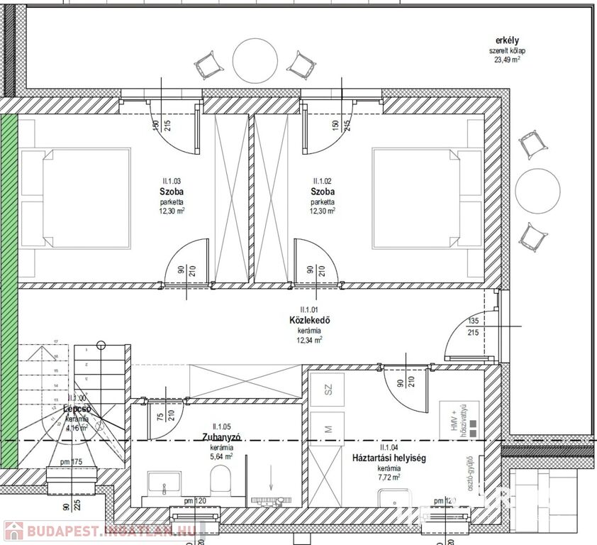 - Energiahatékony megoldások – 15 cm-es grafitos hőszigetelés, hőszivattyús padlófűtés gondoskodik az otthon melegéről