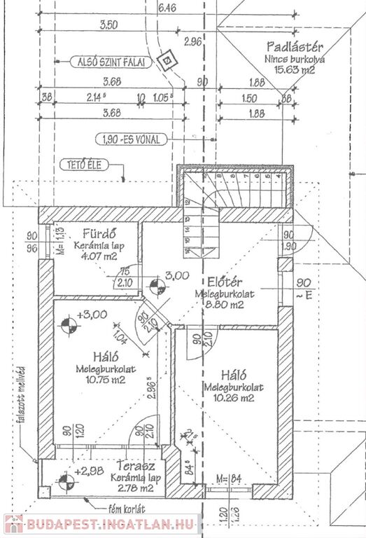 Hőleadás: Padlófűtés a hidegburkolatos helyiségekben, radiátorok a hálószobákban.