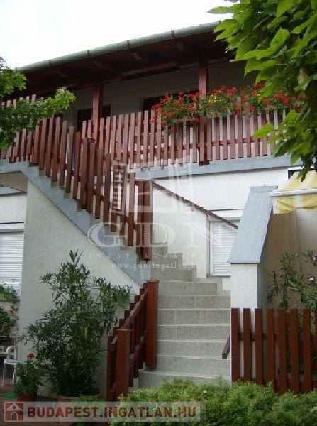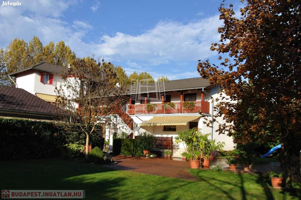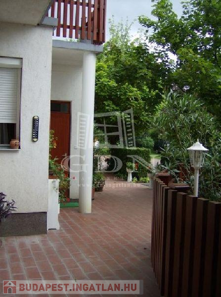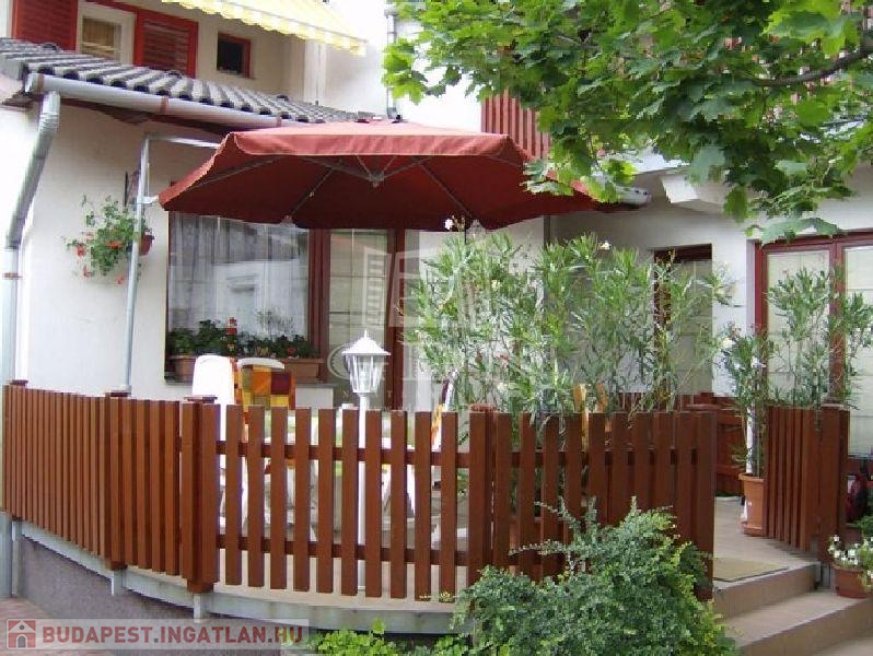 A gondosan karbantartott, parkosított kert rendezett megjelenést biztosít, amely egyértelműen a tulajdonosi odafigyelést tükrözi.