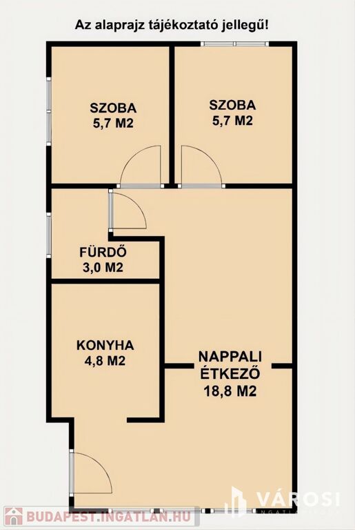 - Helyiségek: 2 külön hálószoba, egy nappali étkezősarokkal, felszerelt konyha és egy fürdőszoba/WC.