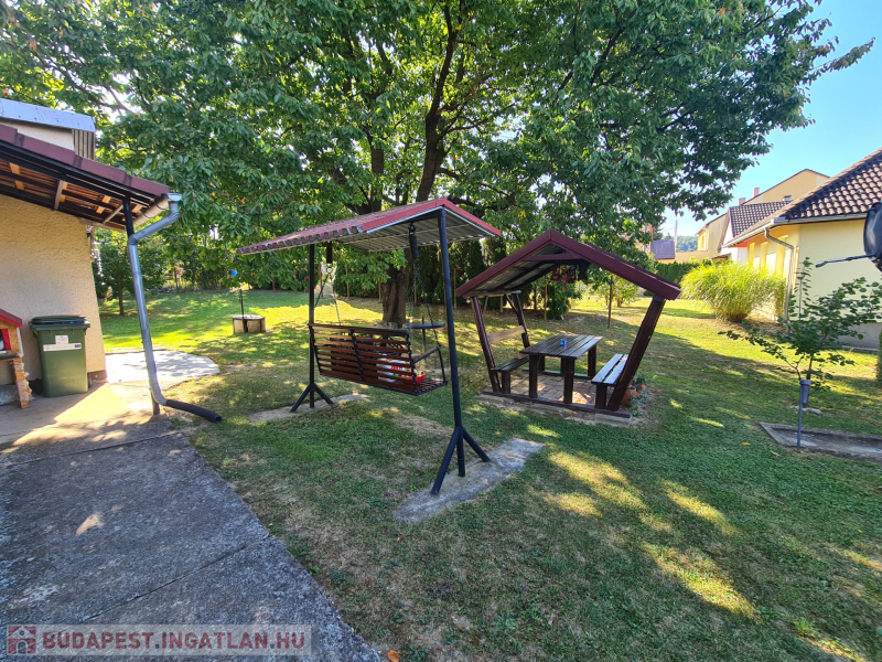 A rendezett, gondozott kert ideális pihenéshez, kertészkedéshez, vagy akár családi programokhoz.