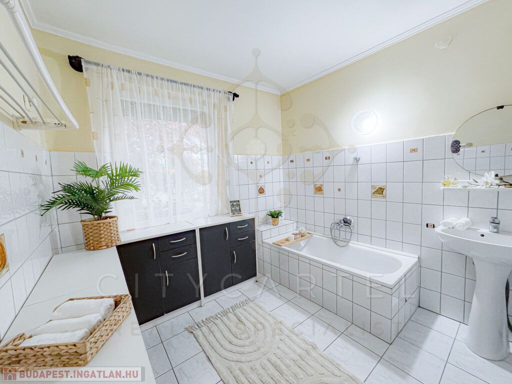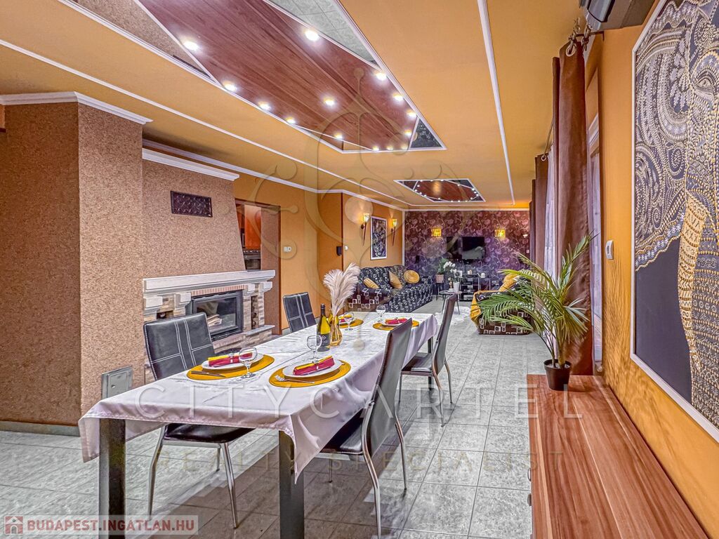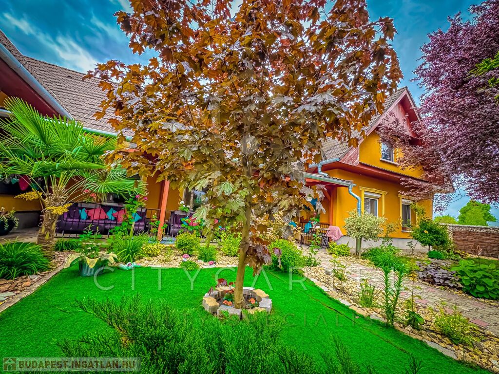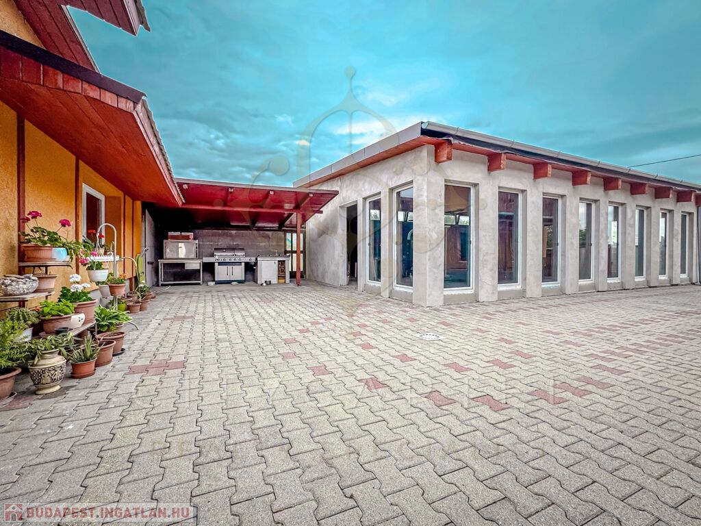A fővárostól mindössze egy órányi autóútra, az ország közepén exkluzív, minden igényt kielégítő családi házat kínálunk eladásra a hozzá kapcsolódó telephellyel és működő kereskedelmi egységgel. A 8.797 nm-es, teljesen körbekerített családi birtok a település centrumától csupán néhány percnyire, a városka frekventált pontján, tranzitútvonalak csomópontjában helyezkedik el. A telek részben kereskedelmi, illetve raktározási célokat szolgáló területre, részben állandó lakhatást biztosító családi házra, udvarra és kertre tagolódik. Az ingatlan egyedülállóan kedvező elhelyezkedésének és méretének köszönhetően kiválóan alkalmas vállalkozói tevékenység végzésére. A telephely jelenleg is nagy forgalmat bonyolító kereskedelmi egységként működik, melyen raktárak és fűtött irodaépület (koedukált mosdóval) került kialakításra. Az ingatlanra való bejutást három kapu biztosítja (ebből egy elektromos). A családi ház 3 méteres beton alappal, szigetelt ytong falazattal rendelkezik, tetőtere beépíthető. Az épület felépítése során felhasznált, kiváló minőségű építőanyagok, esztétikus, modern burkolatok és nyílászárók garantálják az ingatlan exkluzív jellegét. A rendkívül jól szigetelt, 160 nm-es családi ház fűtéséről nagy teljesítményű BOSCH hőszivattyúval (17 kw) üzemeltetett padlófűtés gondoskodik. Az épület elektromos áram ellátását 12,5 KW teljesítményű napelem rendszer biztosítja (villanytűzhely, hűtők, mosógép, bojlerek, műhelyben használt elektromos gépek, klímák, stb.) amelynek, valamint a fal és mennyezeti szigetelésnek köszönhetően a fűtés- és rezsi költségek egyedülállóan alacsonyak. Az összközműves ingatlanba a kábeltévét, vezetékes internetet és ipari áramot (3x32A) is bevezették, a telken a gázcsonk is megtalálható. A családi ház előtt álló, téglából épült, elektromos kapuval felszerelt garázs két autó befogadására alkalmas, de az épület mögött további 6 férőhelyes, szintén zárt gépkocsi tároló is kialakításra került. A lakóházhoz kapcsolódó egyéb épületek fűthető műhelynek és szerelő csarnokoknak biztosítanak helyet. Az épületek által körbezárt, térkövezett belső udvaron elhelyezkedő fedett terasz bográcsozásra, családi összejövetelekre alkalmas. Az udvarban álló, befejezésre váró (75%-os készültségű), padlófűtéssel tervezett úszómedence és medenceház az új tulajdonosok kényelmét szolgálja majd. A ház nyugati tájolású terasza, valamint a hozzá kapcsolódó, fákkal és dísznövényekkel betelepített előkert kiváló lehetőséget biztosít az itt élők számára a gondtalan pihenésre.